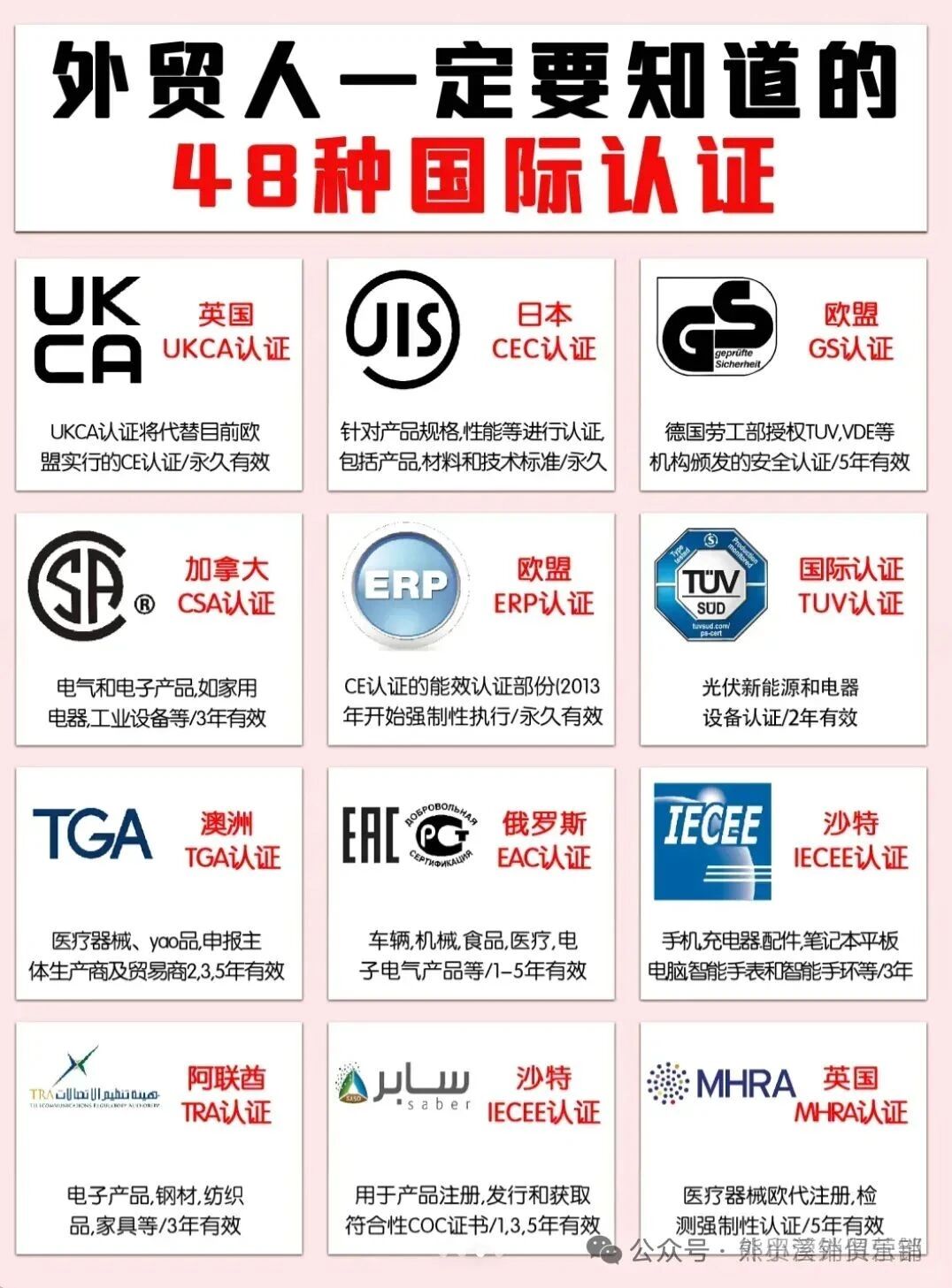今天分享一份「国际认证通关秘籍」,带你轻松破解各国市场准入规则,订单暴增不是梦✨ 🌟 热门认证Top10速览